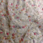 Pearl Ivory & Pastel Garden Embroidered Net Fabric