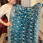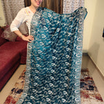 Deep Navy Blue Georgette Saree with Heavy Floral Border. Full heavy embroidery work of Gold and Silver Zari and embellished with crystals. 1 Piece Length 6 meters width 1.1 meters